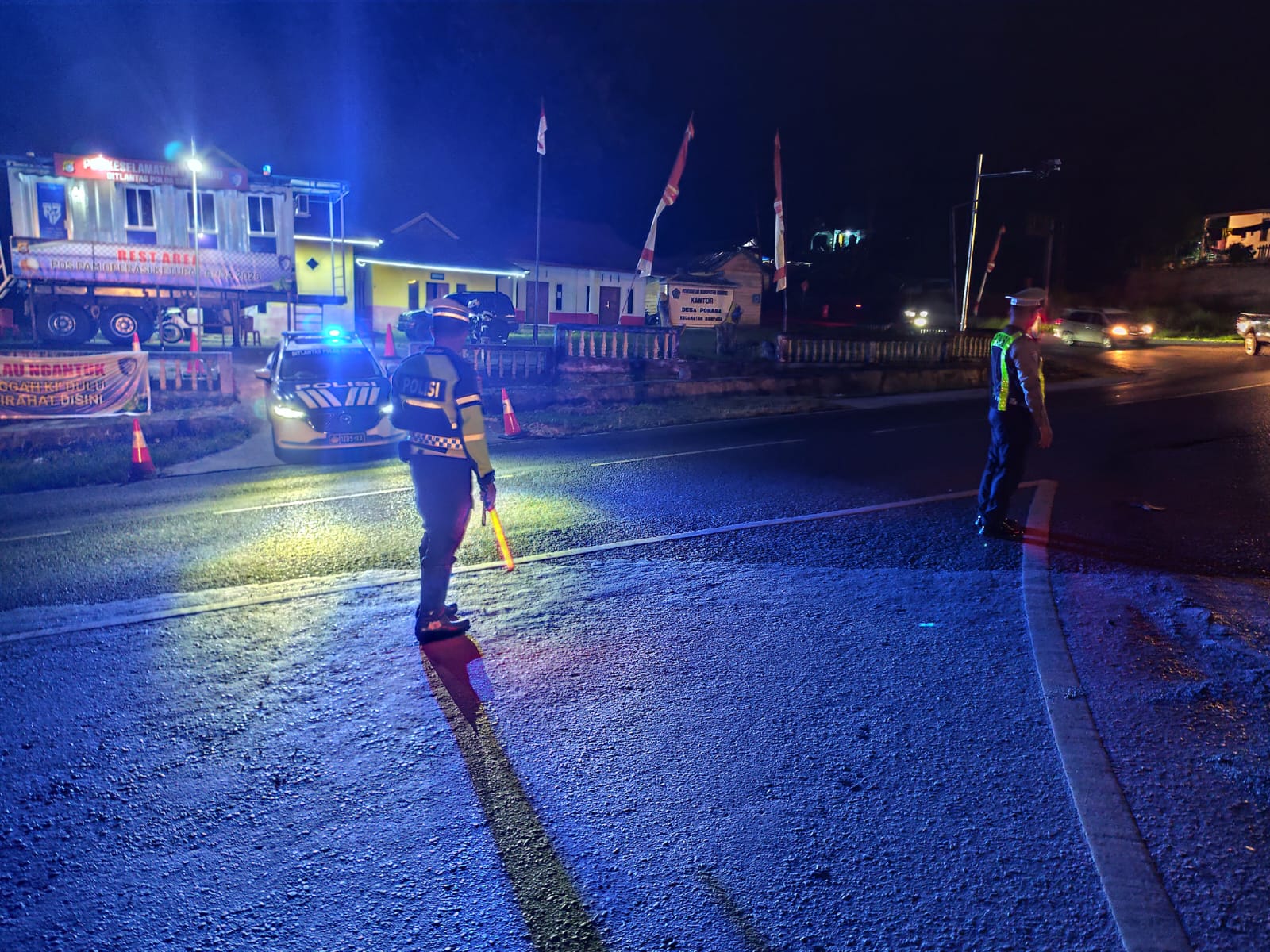 Konawe, fokustime.id– Respons cepat ditunjukkan personel Pos Pengamanan (Pos Pam) Terpadu Pohara dalam mengantisipasi potensi kecelakaan lalu lintas akibat tumpahan solar di jalur poros Kendari–Konawe, tepatnya di pertigaan Kelurahan Sampara, Selasa malam (28/4/2026).