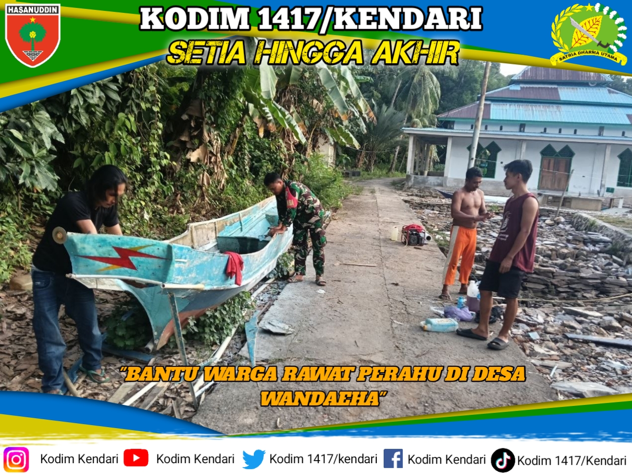 Konsel ,fokustime.id– Serda Bahtiar, Babinsa Koramil 1417-10 Moramo Kodim 1417/Kendari, melaksanakan kegiatan Komunikasi Sosial (Komsos) yang dibarengi dengan aksi nyata membantu warga binaan merawat perahu di Desa Wandaeha, Kecamatan Laonti, Kabupaten Konawe Selatan, Jumat (17/4).