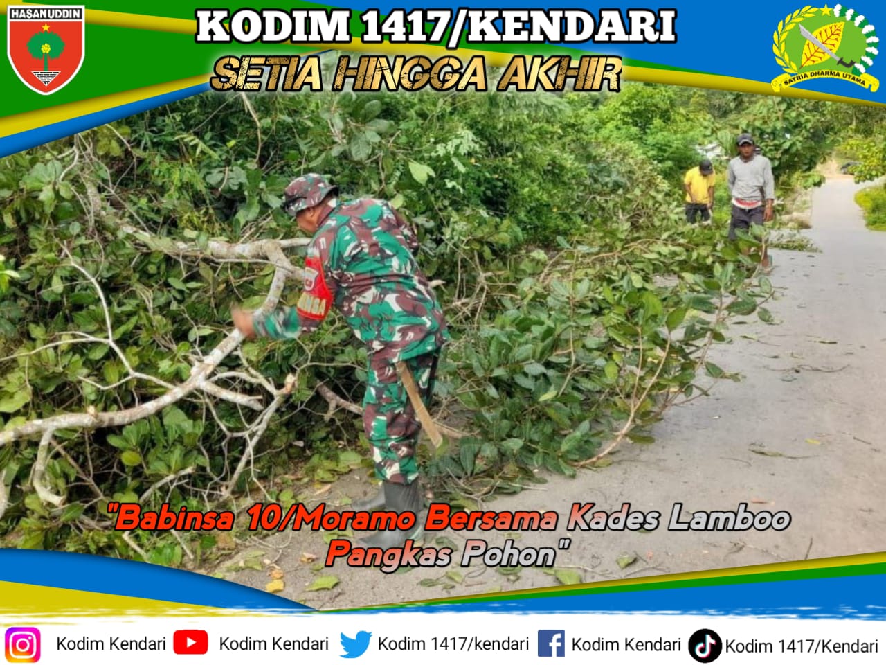 Sinergi Kuat TNI dan Masyarakat: Babinsa Koramil Moramo Pimpin Karya Bakti Pemangkasan Pohon di Desa Lamboo