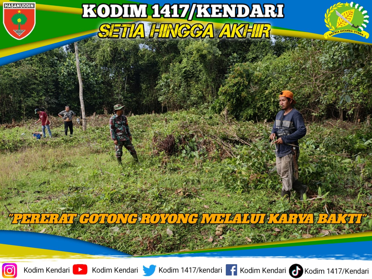 Dalam pelaksanaannya, Kopda Ricki Ahmad bersama warga bahu-membahu membersihkan semak belukar dan rumput liar yang menutupi area perkebunan.