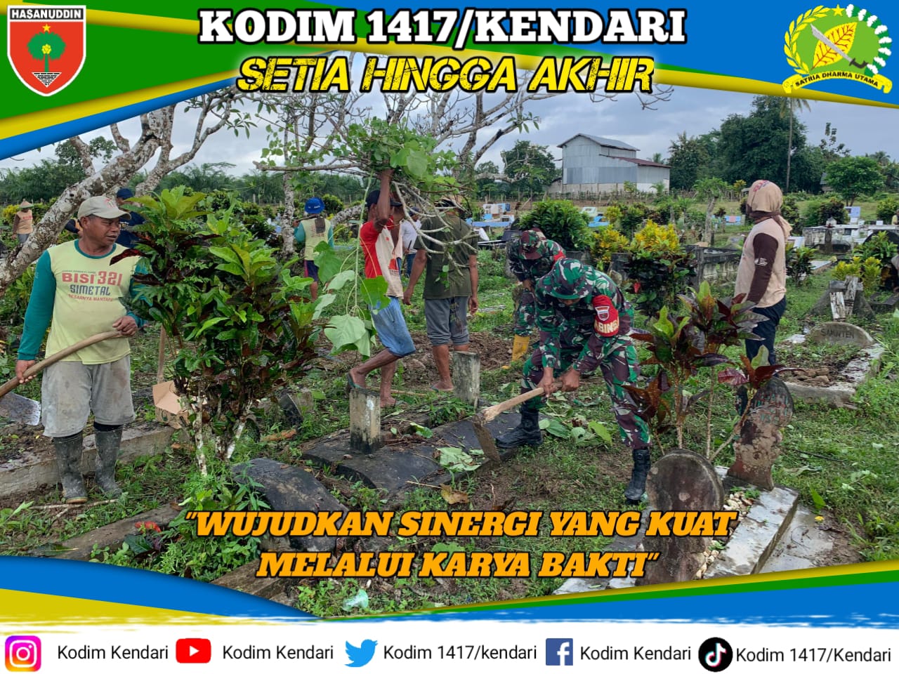 Konsel, fokustime.id_ Dalam rangka menjaga kebersihan lingkungan dan merawat fasilitas umum, personel TNI dari Koramil 1417-04/Lainea Kodim 1417/Kendari bersama warga setempat melaksanakan kegiatan kerja bakti pembersihan di area Tempat Pemakaman Umum (TPU), bertempat di Desa Pangan Jaya, Kec. Lainea, Kab. Konawe Selatan, Kamis (22/01).