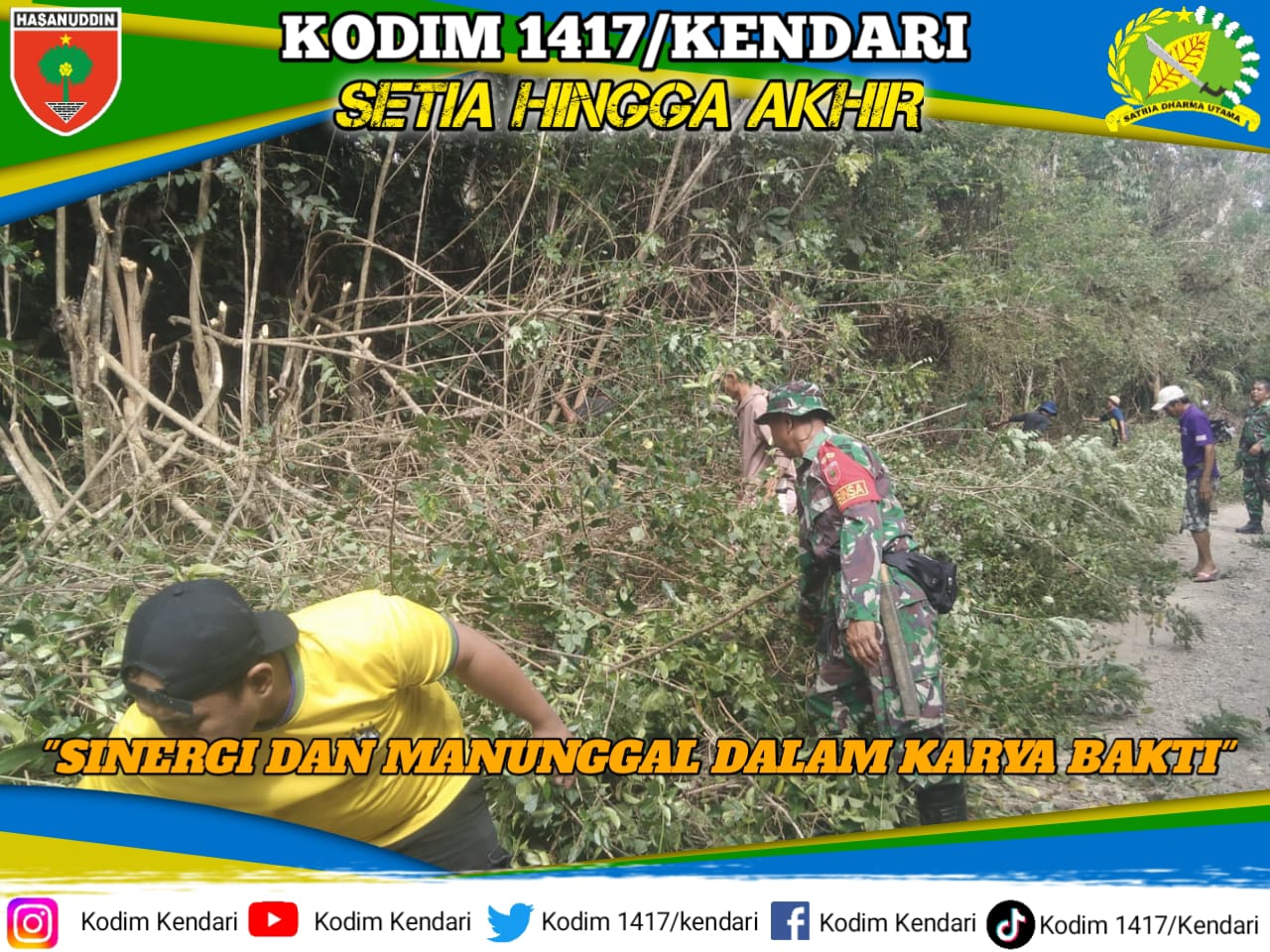 Konawe, fokustime.id– Semangat gotong royong mewarnai jalannya kegiatan Karya Bakti pembersihan ruas jalan transmigrasi yang dilakukan anggota Koramil 1417-03/Lambuya Kodim 1417/Kendari, Desa Kasaeda, Kec. Uepai, Kab. Konawe, Selasa (25/11).