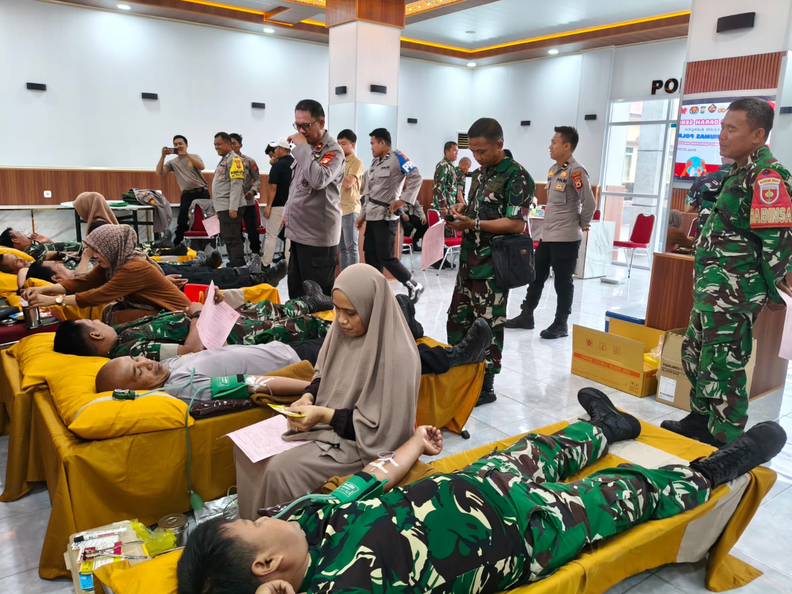 Sidrap, fokustime.id– Personel Komando Distrik Militer (Kodim) 1420/Sidrap menunjukkan semangat sinergi dan kepedulian sosial dengan mengikuti kegiatan donor darah serentak yang diselenggarakan dalam rangka memperingati Hari Jadi Hubungan Masyarakat (Humas) Polri ke-74 tahun 2025.