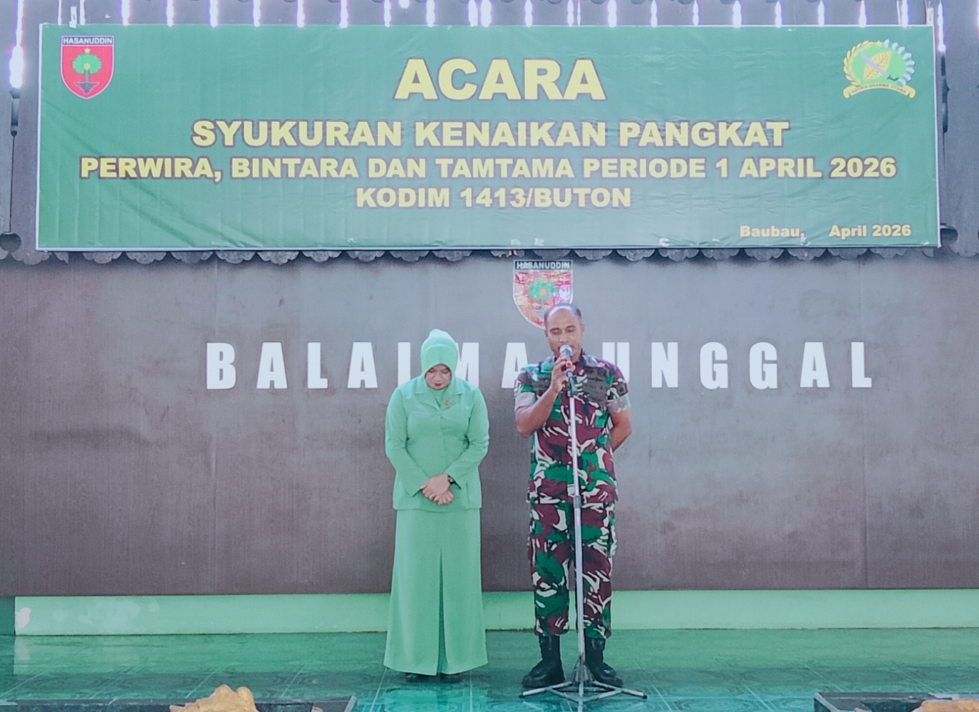 Sementara itu, Dandim 1413/Buton Letkol Inf Arif Nofiyanto, S.E., dalam arahannya menyampaikan bahwa keberhasilan para prajurit dalam meraih kenaikan pangkat tidak terlepas dari doa dan dukungan istri serta keluarga. Ia menekankan agar kenaikan pangkat tersebut disyukuri dengan penuh keikhlasan dan disertai dengan peningkatan kualitas pengabdian kepada bangsa dan negara.