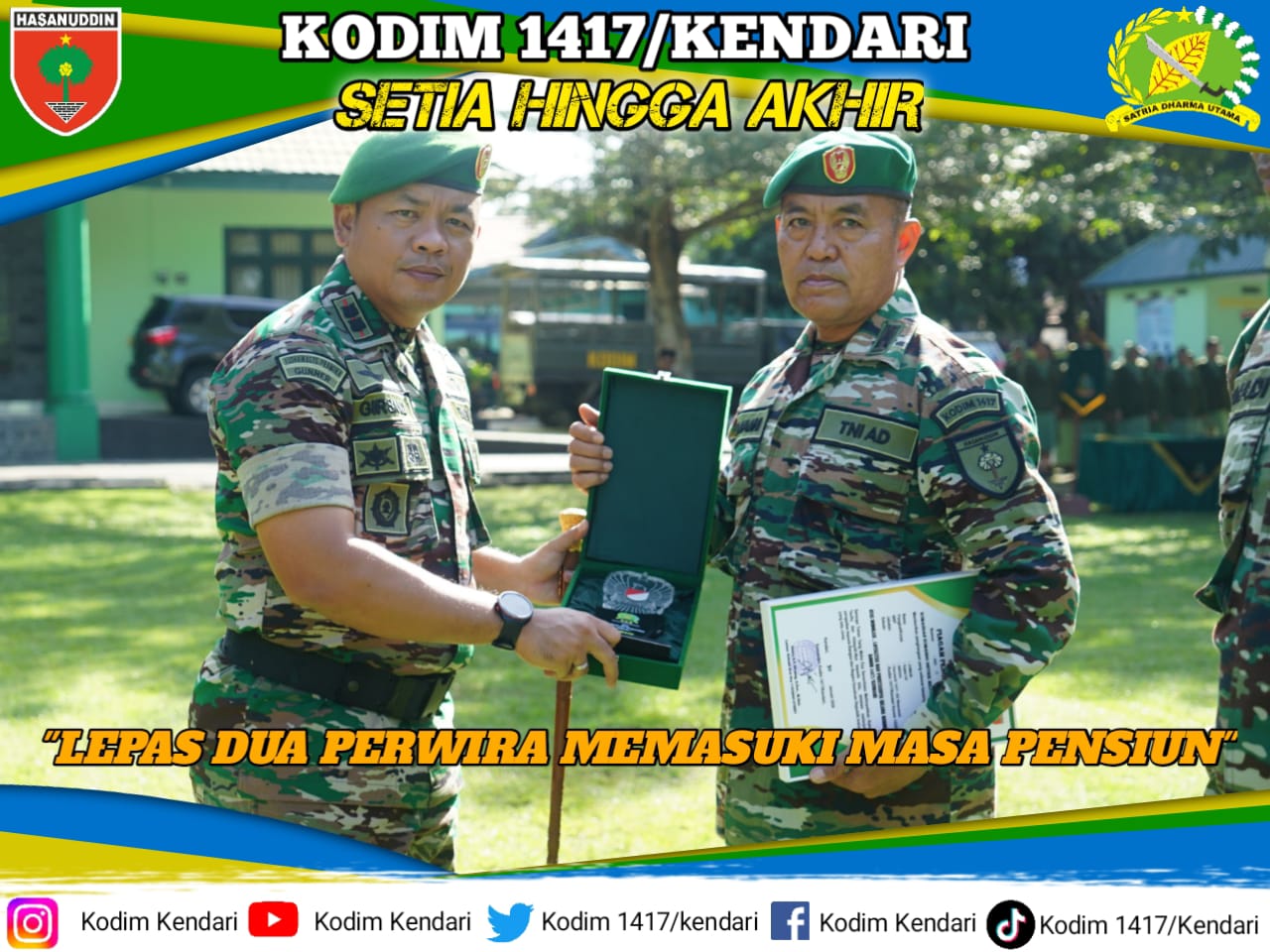 Tak luput juga Dandim Letkol Arm Danny A.P Girsang, S.Sos., M.Han, mengucapkan terima kasih kepada Kapten Inf Jumain dan Kapten Cku Ahmadi beserta keluarga atas pengabdiannya selama ini kepada TNI Angkatan Darat dan pengabdian dan dharma bhakti para anggota selama bertugas di kodim 1417/kendari.