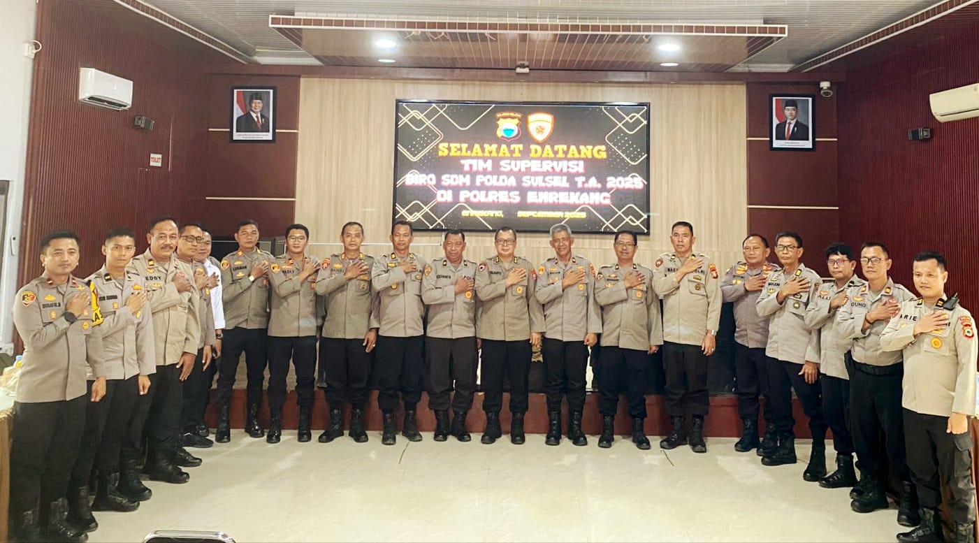 Enrekang,fokustime.id – Dalam rangka memastikan pelaksanaan program pembinaan dan manajemen sumber daya manusia Polri berjalan optimal di jajaran kewilayahan, Tim Supervisi Biro SDM Polda Sulsel melaksanakan kunjungan kerja ke Polres Enrekang, yang digelar di Aula Wira Pratama Mapolres. Senin (13/10/2025).