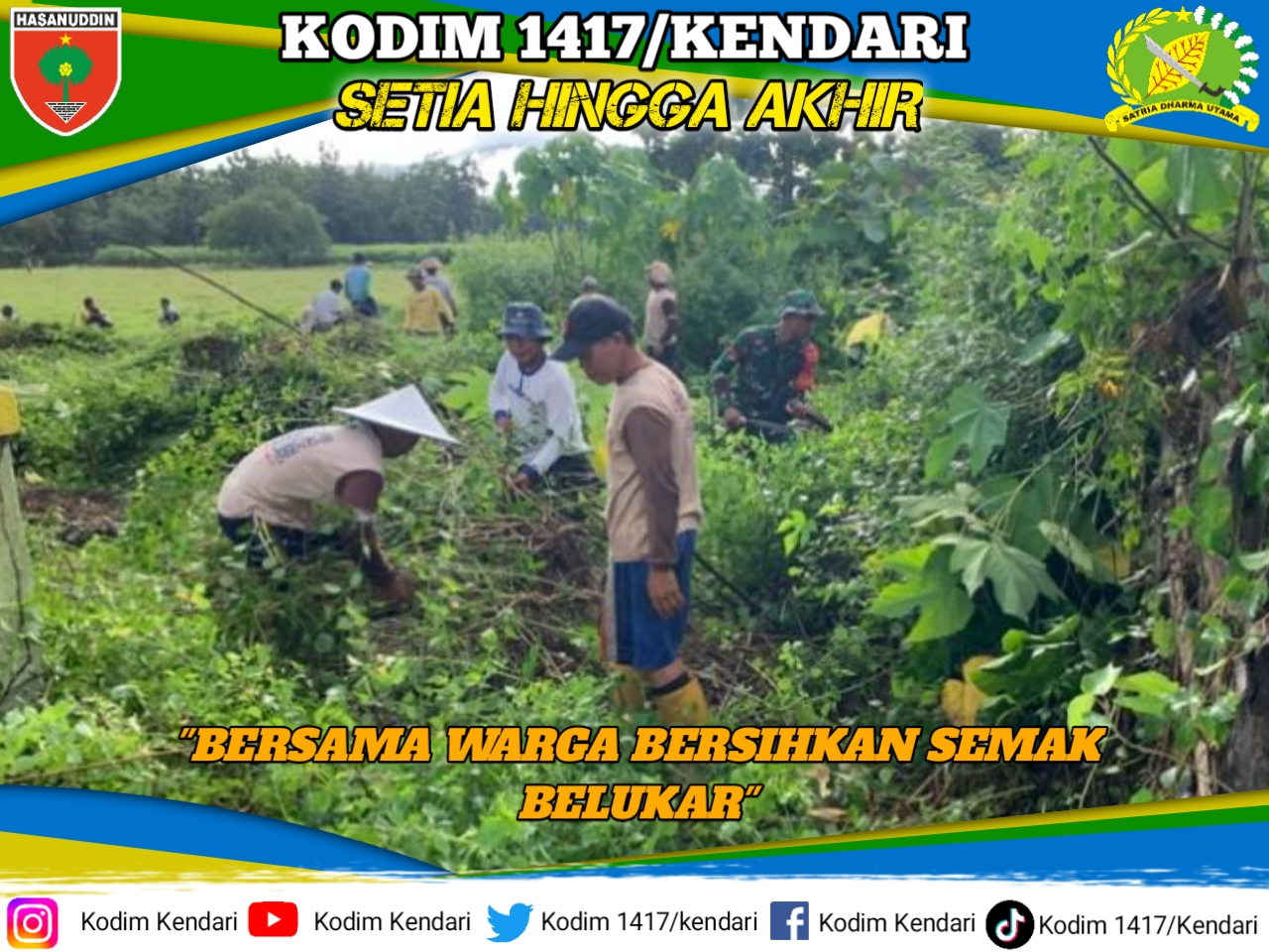 Kegiatan ini difokuskan pada pembersihan semak belukar yang telah rimbun dan menutupi akses jalan serta sarana olahraga desa. Dengan menggunakan peralatan seadanya, para warga dan Babinsa bahu-membahu membabat tanaman liar guna memastikan fasilitas publik kembali rapi dan nyaman untuk digunakan.