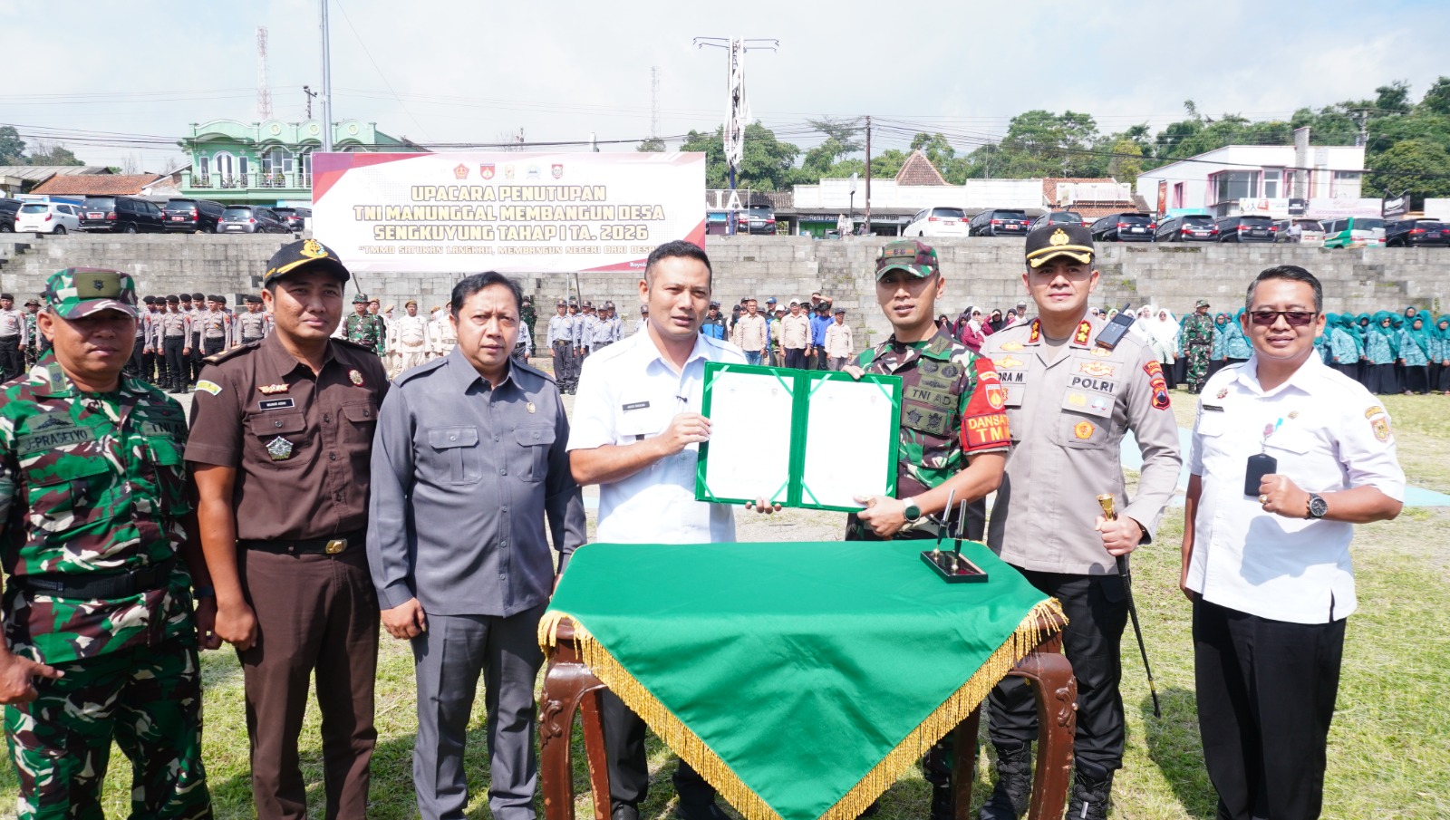 Boyolali, fokustime.id– Program TNI Manunggal Membangun Desa (TMMD) Sengkuyung Tahap I Tahun 2026 di Kabupaten Boyolali resmi ditutup melalui upacara yang digelar di Lapangan Desa Pancasila, Desa Mliwis, Kecamatan Cepogo, Rabu (11/03/2026). Penutupan ini menandai berakhirnya kegiatan pembangunan yang dilaksanakan selama satu bulan penuh oleh Satgas TMMD bersama masyarakat.