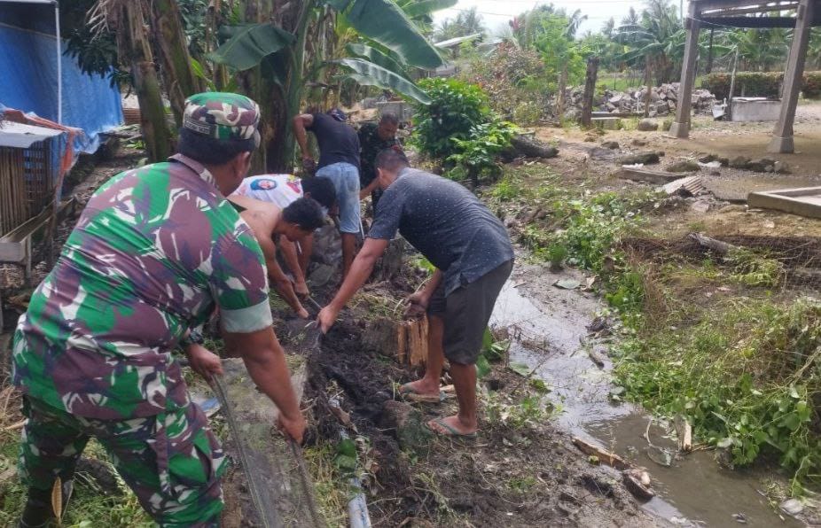 Secara gotong royong, anggota Koramil bersama-sama warga membersihkan material penyumbat selokan dan mengangkut sampah hingga tuntas. Kegiatan yang dimulai sejak pagi hari ini berlangsung dengan lancar dan aman, serta berhasil diselesaikan.