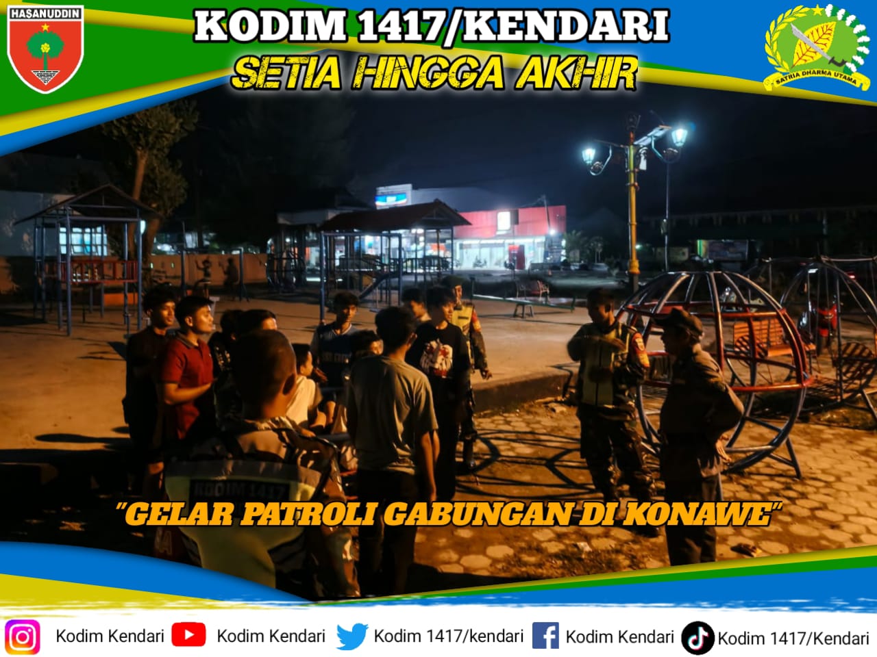 Konawe, fokustime.id– Dalam upaya berkelanjutan untuk menjaga stabilitas dan memperkuat ketahanan wilayah, Komando Rayon Militer (Koramil) 1417-02/Wawotobi di bawah Komando Distrik Militer (Kodim) 1417/Kendari melaksanakan patroli gabungan bersama Komponen Pendukung (Komduk), Kel. Wawotobi dan Kel. Kasupute, Kec. Wawotobi, Kab. Konawe, Senin (10/11).