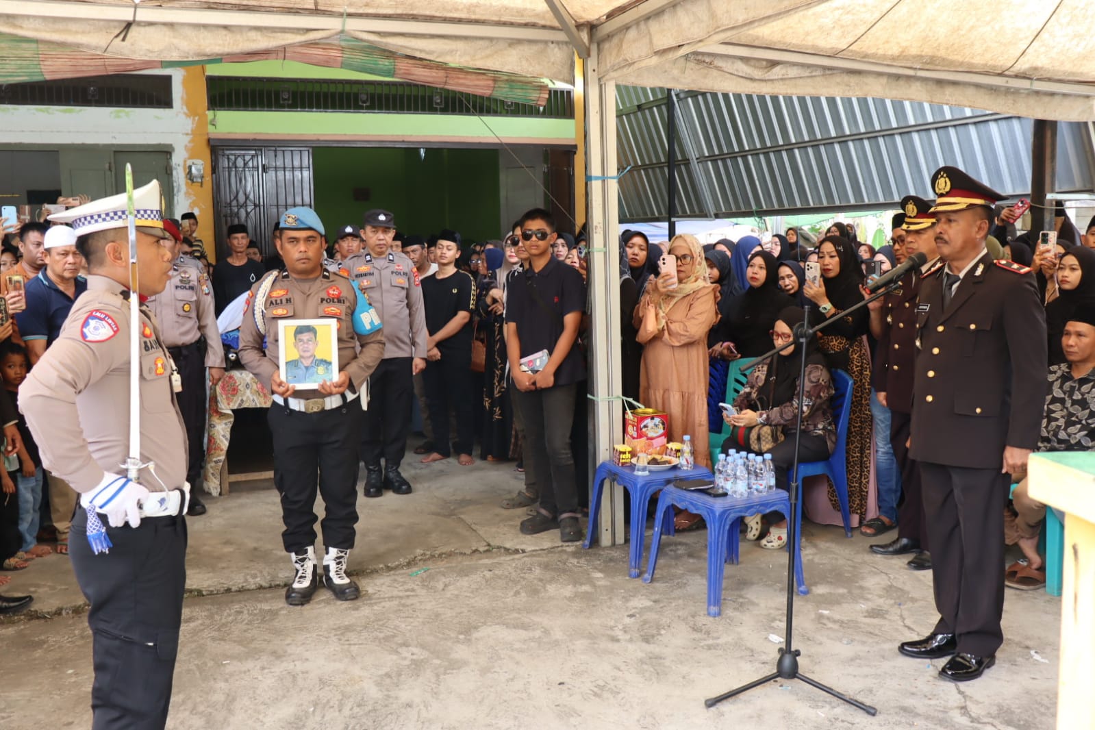 Prosesi pemakaman berlangsung sesuai tradisi kedinasan Polri, mulai dari pembacaan riwayat hidup almarhum, Apel Persada, penimbunan tanah secara simbolis, tembakan salvo, hingga penghormatan terakhir kepada almarhum yang telah mengabdikan hidupnya untuk institusi.