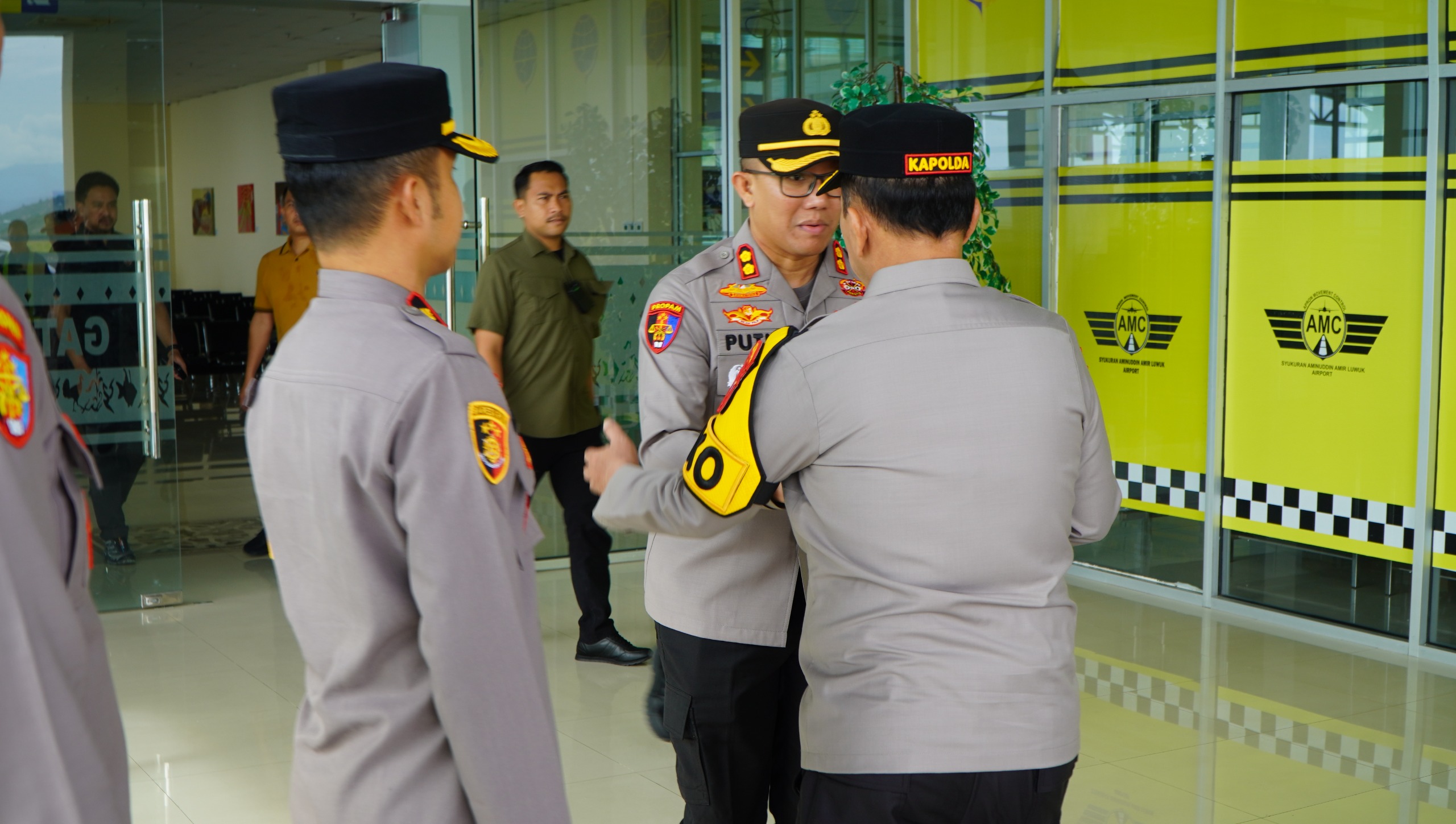 Selain Kapolres, tampak hadir di Bandara, Wakapolres Kompol Pino Ary, SH, SIK, MH dan pejabat utama serta perwira Polres Banggai.