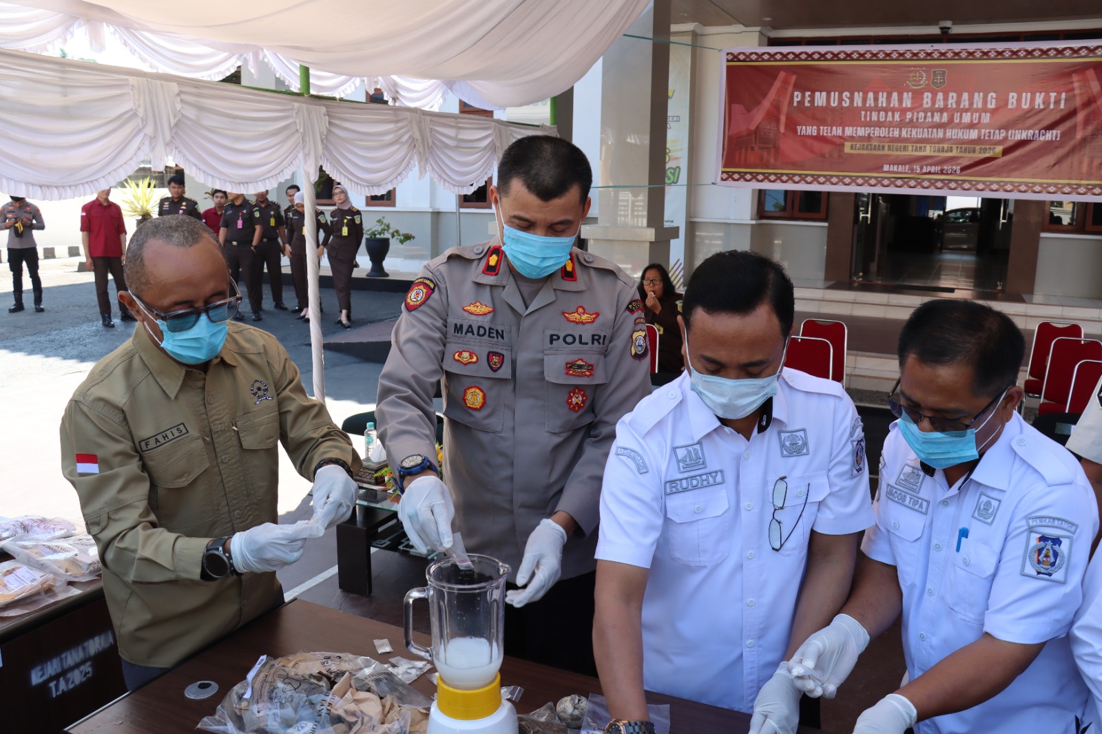 Pemusnahan barang bukti ini merupakan wujud nyata komitmen aparat penegak hukum dalam menegakkan aturan serta memberikan kepastian hukum kepada masyarakat. Sejumlah barang hasil tindak pidana yang telah memiliki putusan inkrah dari pengadilan dimusnahkan sesuai dengan ketentuan dan prosedur yang berlaku.