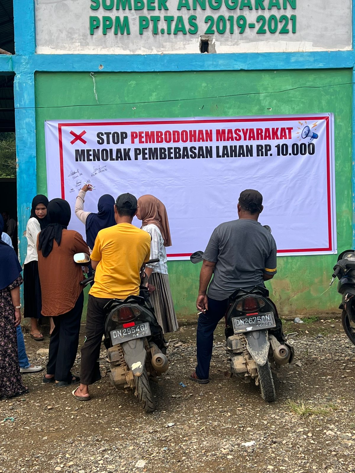 Pemasangan spanduk penolakan tersebut, muncul karena adanya konflik pembebasan lahan masyarakat dengan pihak PT. Tehnik Alum Service (TAS) terkait pembebasan lahan projek strategis nasional PT. Morowali Industri Sejahtera (MIS) yang hingga saat ini belum berkesudahan.