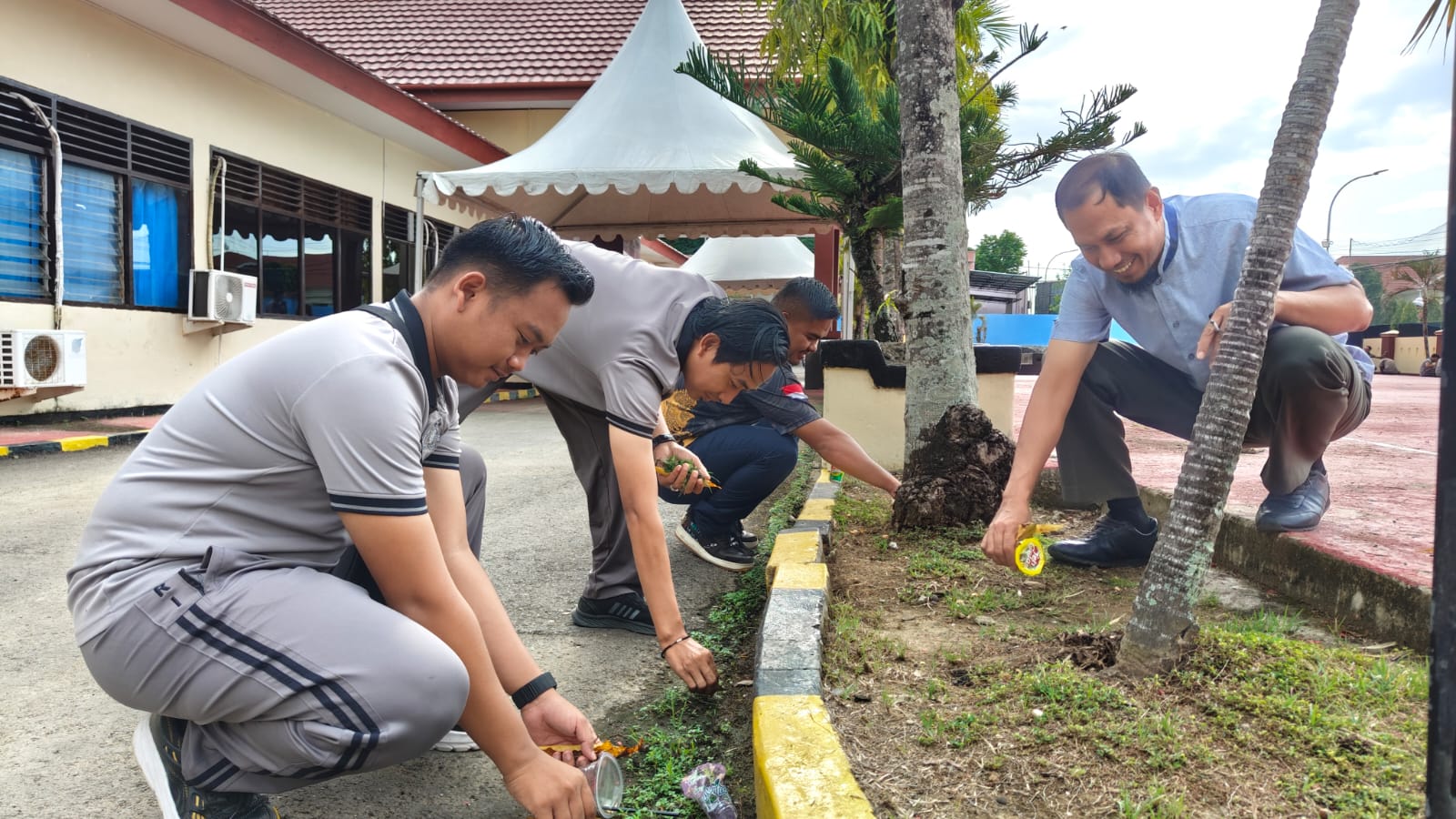 Seluruh personel tampak antusias mengikuti kerja bakti dengan membersihkan halaman dan sejumlah titik di sekitar kantor.