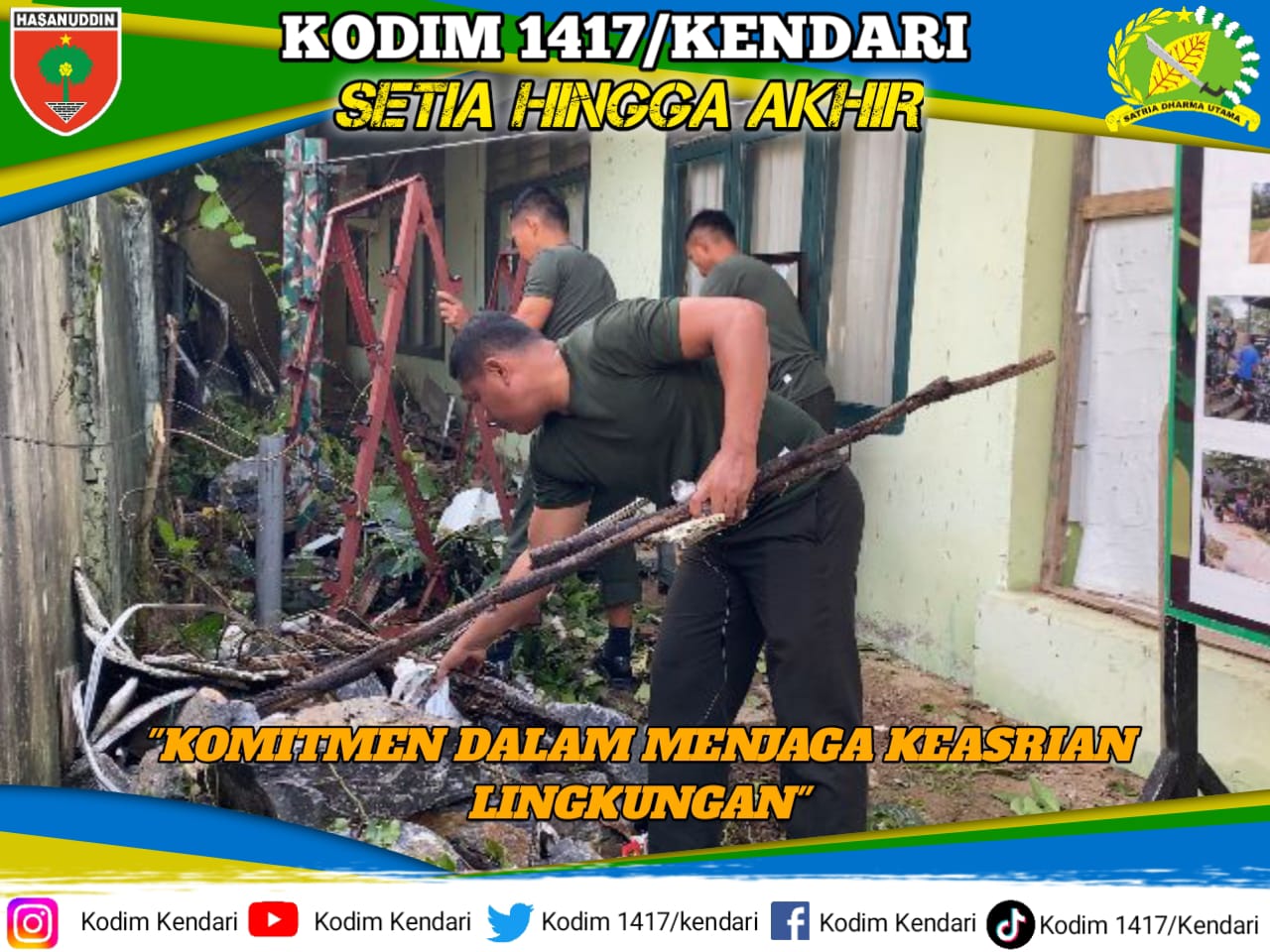 Kegiatan ini menjadi bukti bahwa disiplin prajurit tidak hanya terpaku pada tugas pertahanan, tetapi juga pada penjagaan ekosistem perkotaan. Di bawah langit Kendari yang cerah, para personel bahu-membahu memilah sampah dan menata area terbuka hijau agar tetap sedap dipandang mata.