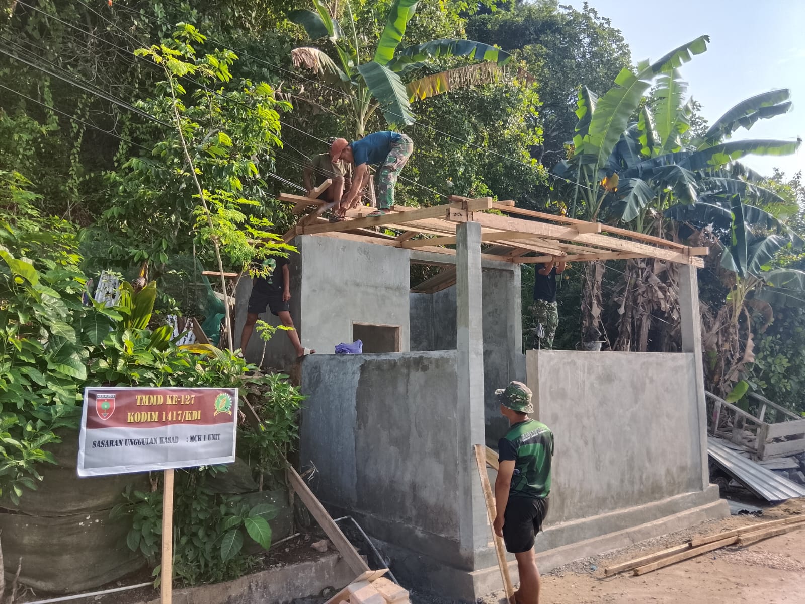Wujudkan Sanitasi Layak, Satgas TMMD 127 Kodim 1417/Kendari Kejar Pemasangan Atap MCK di Sambuli